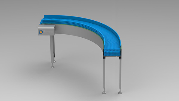 Cinta transportadora de malla plástica giratoria de 90 °