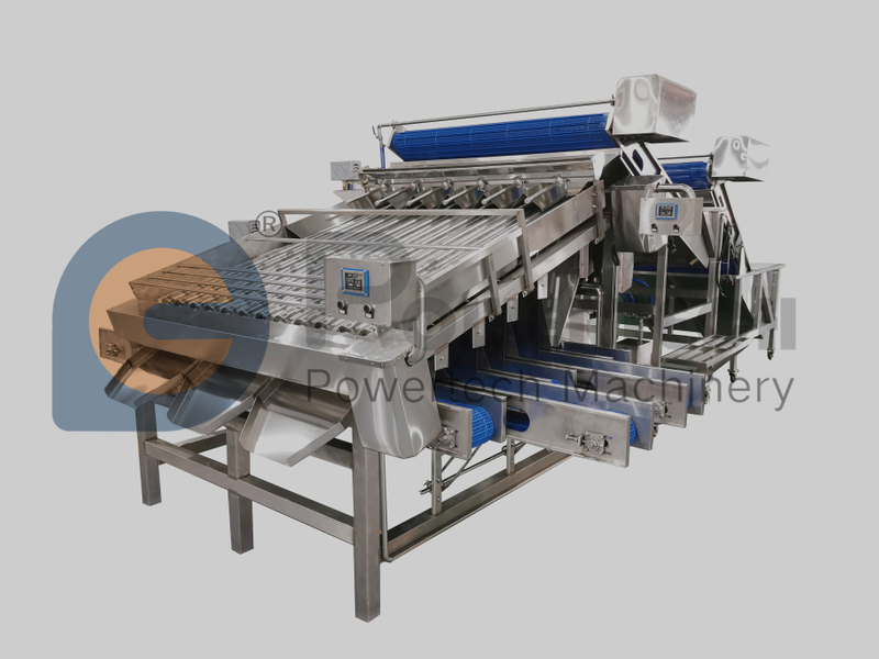 La clasificadora automática de camarones está diseñada para clasificar camarones en diferentes tamaños de acuerdo con los requisitos del cliente.Ofrece una clasificación suave y precisa tanto para camarones de agua fría como de agua tibia.Después de que el sistema de alimentación libera y orienta los camarones crudos, la clasificación (clasificación) ocurre como camarones crudos. cae en los carriles de clasificación ese es el espacio entre los rodillos y se mueve hacia abajo de manera divergente, el espacio entre los rodillos es ajustable en un amplio rango que puede cumplir con el requisito de clasificación de tamaño y garantiza la precisión de la clasificación.