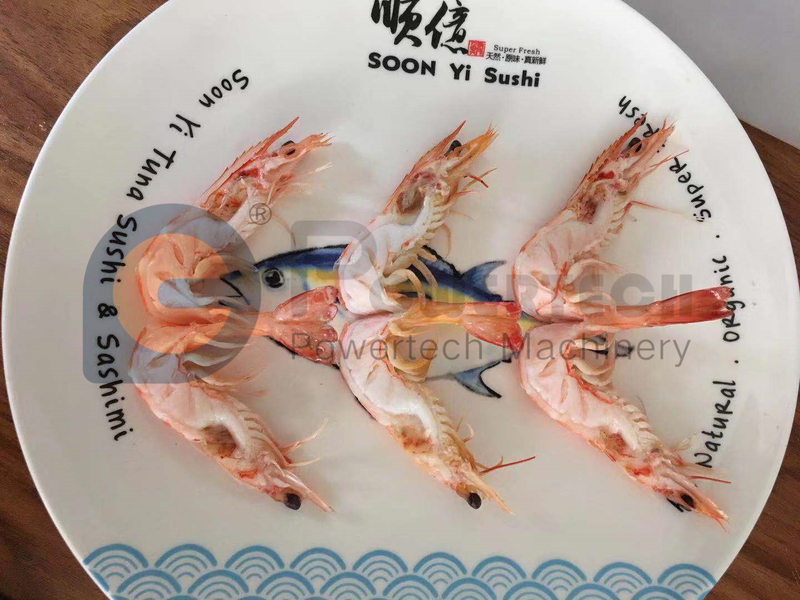 Nuestra máquina peladora y desvenadora de camarones también puede procesar Vannamei de frente y cocido.Es difícil procesar manualmente los camarones con cabeza y cocidos en diferentes estilos, mientras que nuestra máquina puede procesar de manera muy fácil y automática, siguiendo las fotos para su referencia.