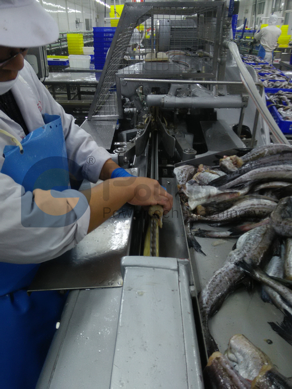 La máquina fileteadora de pescado puede eliminar automáticamente el hueso central del abadejo H&G que es el abadejo de Alaska, el producto terminado es un filete de pescado, que puede realizar una producción rápida y en masa mediante el corte sincrónico del doble lado del pescado, lo que obtiene una mejor consistencia de los productos finales que el fileteado manual.